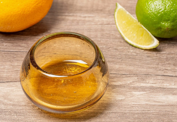Colorful Hammered Glass Cocktail Tumbler in Wooden Tray