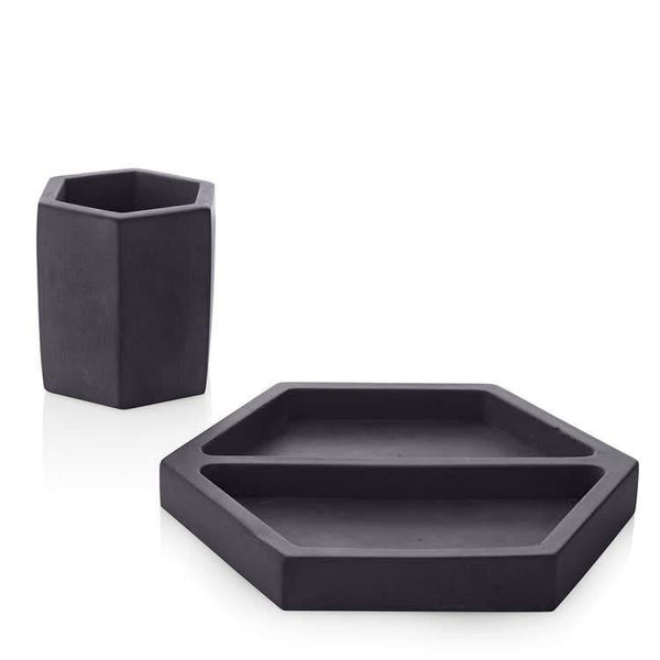 Hexagon Recycled Wood Planters on Metal Bases - Set of 3